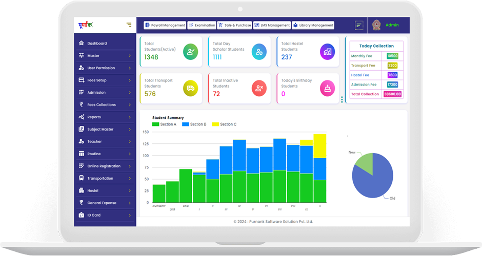 Purnank School ERP simplifies the complex administrative & nonadministrative tasks including online admission, online fees management, examination management, assessments, timetable, schedule planning, teaching-learning, etc.
